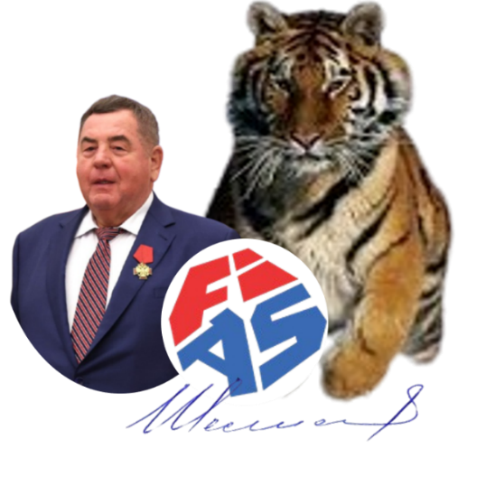 Vasily Shestakov, presidente da International SAMBO Federation (FIAS) e o tigre de Amur, mascote oficial FIAS desde 2015.